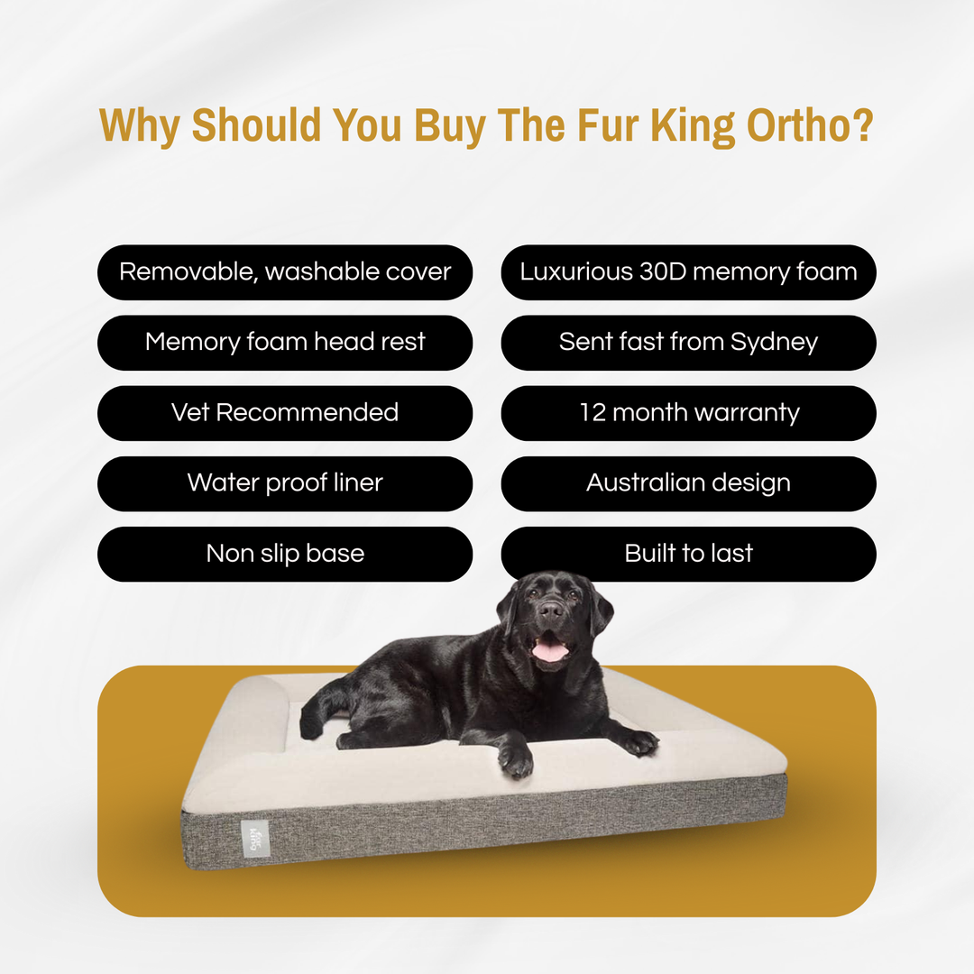 Designed and extensively tested by Fur Kings in house chocolate Labrador Wilfred. This isn't just any ordinary dog bed; it's a premium product that combines practicality, comfort, and luxury all in one. Made with memory foam and orthopedic properties, it's designed to relieve joint and muscle pain in dogs.